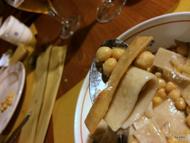 Con Ciciri e tria qui la pura tradizione è rispettata: tra le sagne, che sono lisce e non ‘ncannulate, si troverà la sagna fritta e sarà un piacere gustarla croccante.