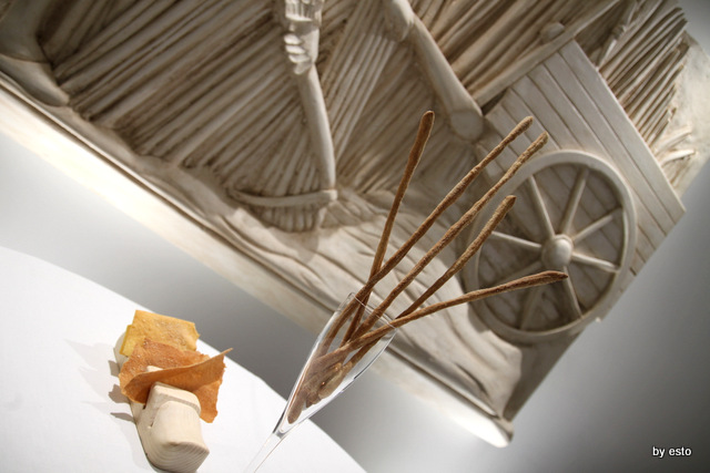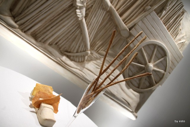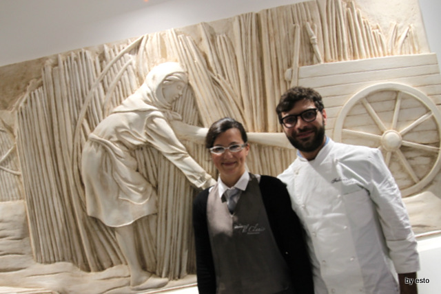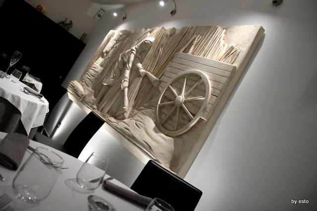 Un bassorilievo, disegnato dal cuoco, domina la saletta.