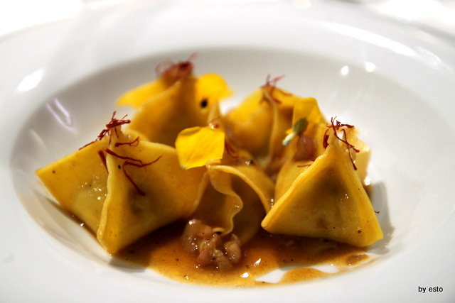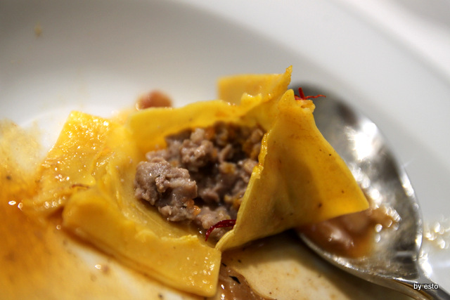 Un primo goloso, profumato di stufato d’agnello racchiuso nello scrigno di pasta tirata a mano con decine di tuorli per kilo di farina.