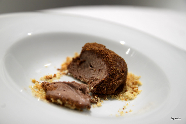 C’è il tartufo di gelato al cacao su briciole di babà, un crunch fuori ordinanza dove apprezzi finalmente la bontà di questa pasta senza il rum.
