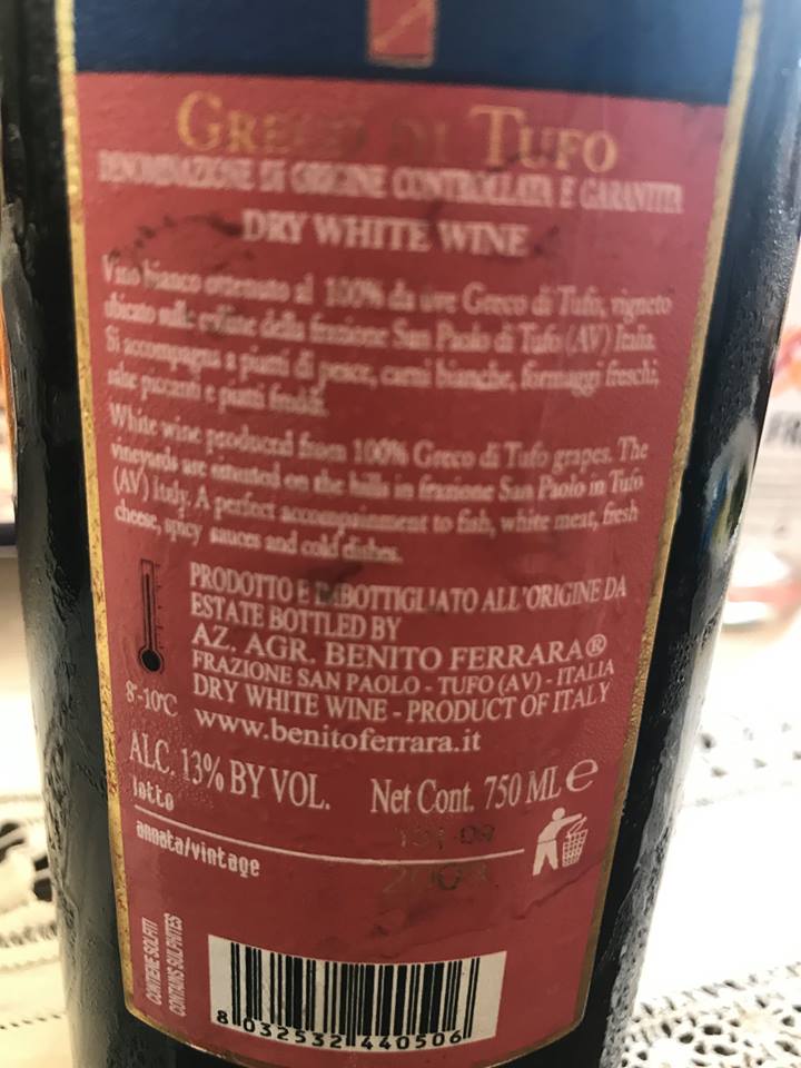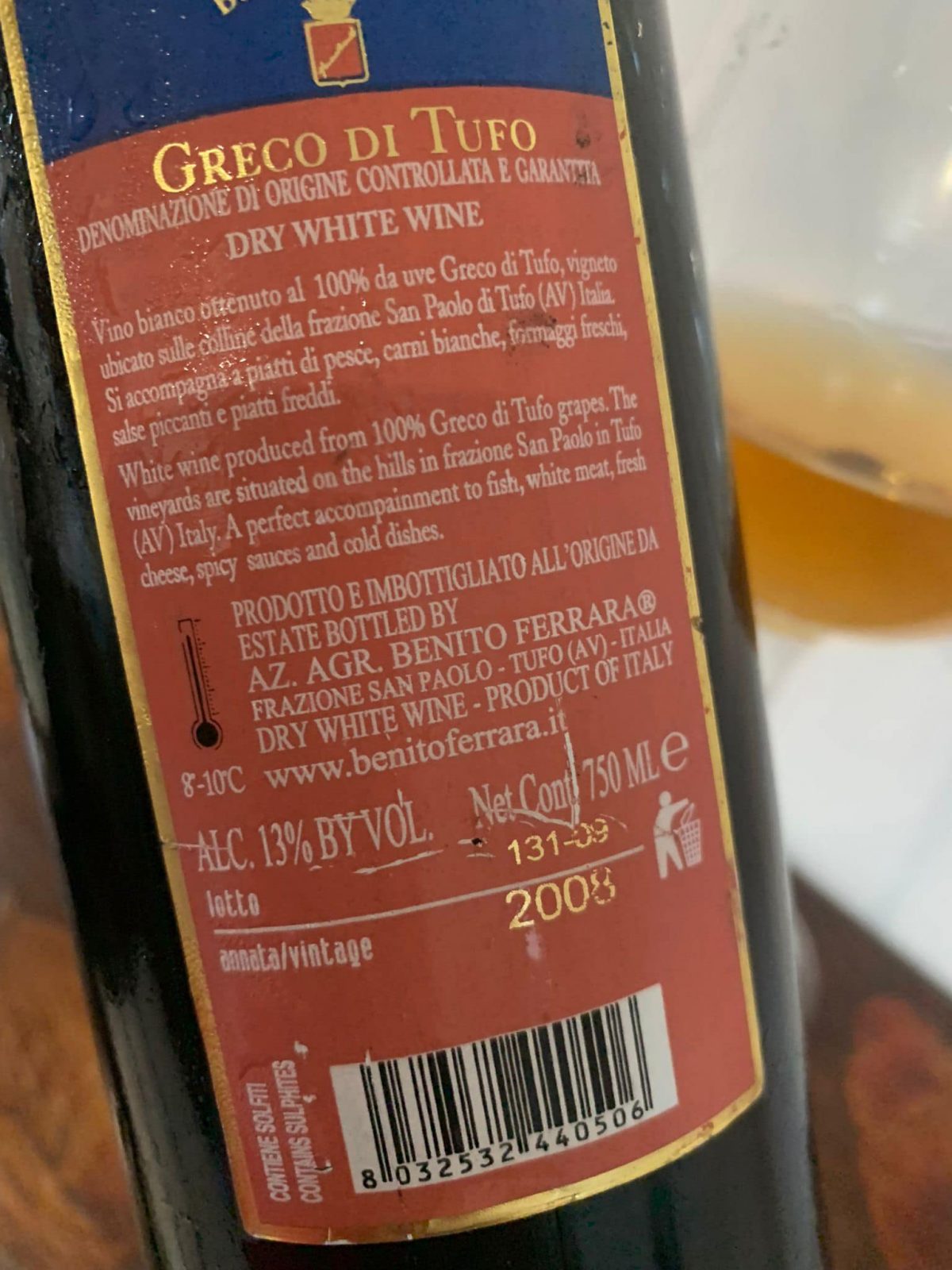 Greco di Tufo 2008 retro etichetta di Benito Ferrara
