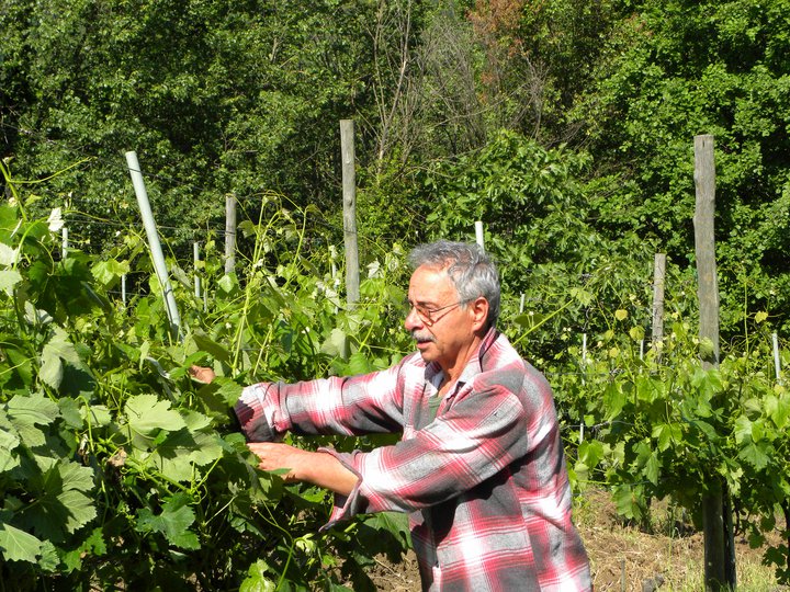 Ma torniamo alla nostra bottiglia. In degustazione è una vera forza per un rapporto qualità prezzo invidiabile. Bello il colore, luminoso e vivace, ricco e consistente che già introduce ad una buona materia. Così il naso sale minerale e gradevole, frutta e ancora frutta, certamente a pasta gialla abbastanza matura, su tutti la pesca. E’ di buon equilibrio con sentori ben fusi e al contempo intensi. Il sorso avvolge bene il palato. Ricco, con una forte carica alcolica ed un’acidità presente. Assieme all’evidente sapidità sa tener testa a quella sensazione pseudocalorica regalando un sorso equilibrato, con un ritorno minerale piacevole. Il tutto è abbastanza lungo e riconoscibile. Papà Aufiero mi disse scherzando che la sua foto non la pubblicano mai, anche se lui nei campi ci lavora e come! Allora ecco la foto promessa, siamo certi che a Marilena farà sorridere; queste in fondo sono solo sciocchezze da comunicatori mentre loro fanno il vino, quello autentico.