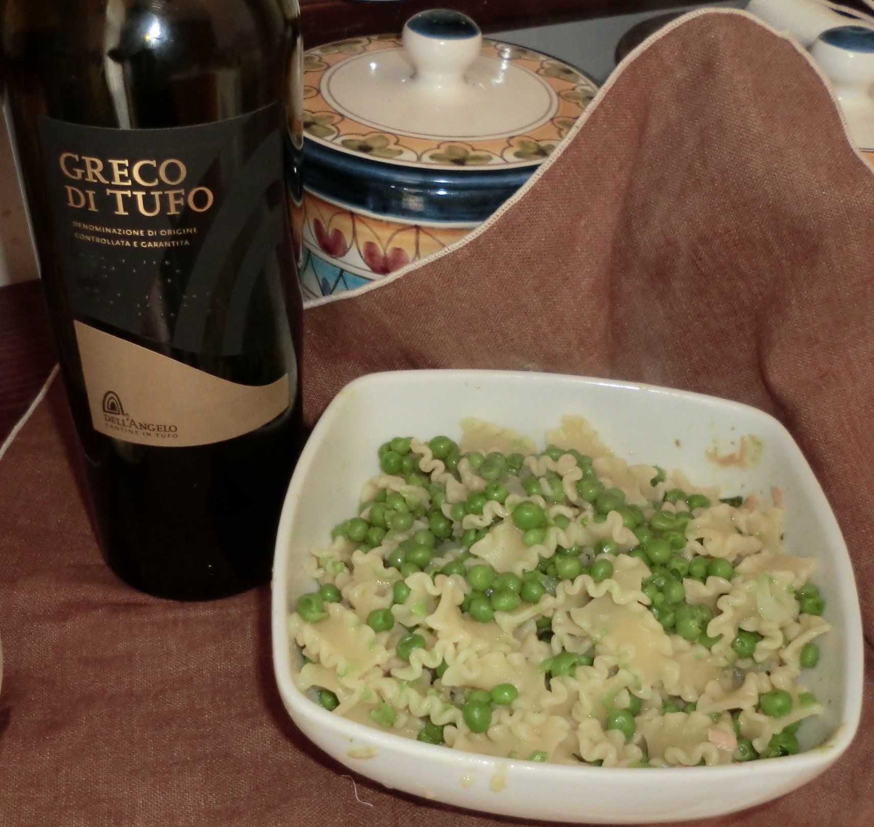 La pasta è piselli senza sale è una finezza con il Greco di Cantina dell’Angelo!