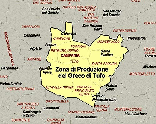 ” Sei veramente gelida, Bice, se ieri sera nemmeno il vino Greco e’ riuscito a scaldarti “. Questa è la traduzione dal latino, dell’epigrafe di un affresco ritrovato a Pompei, risalente quindi al secolo precedente la nascita di Cristo. Ma non sono le presunte caratteristiche afrodisiache del vino Greco del tempo, ad interessarci (almeno il sottoscritto ), piuttosto le origini molto antiche del vitigno. Esso inizialmente fu impiantato e coltivato sui terreni alle falde del Vesuvio insieme ad altri vitigni bianchi con i quali concorreva nella produzione del famoso Lacryma Christi. Ed è solo nel XVII° secolo che il Greco trovò perfetta collocazione nell’area di produzione odierna e cioè in otto comuni della Valle del Sabato :Tufo, Altavilla Irpina, Chianche, Prata P.U., Petruro Irpino, Torrioni, Santa Paolina e Montefusco.