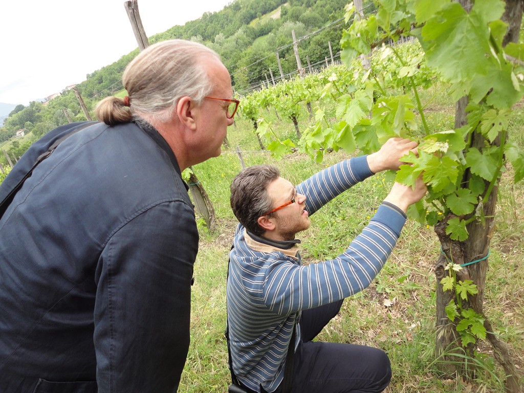 Ed è anche per questo che le rese ad ettaro sono bassissime, oltre che per la scarsa densità d’impianto visto che parliamo di una vigna vecchia (circa 2500 ceppi per ettaro, allora così ” si usava”), nell’ordine di circa 60 qli ad ettaro. Gli Gnerre, tre generazioni di viticoltori, che durante il ciclo produttivo hanno incontri periodici con Michele D’Argenio, enologo di Montesole, praticano inoltre una potatura verde rigorosa, usano fare cimatura apicali ma non defoliazioni laterali che potrebbero esporre le uve a scottature pregiudicanti. Nessuna concimazione e nessun diserbo chimico viene praticato, una sola lavorazione del terreno dopo la vendemmia (vangatura), per renderlo più ossigenato, e poi solo sfalci dell’erba. Passiamo alle lavorazioni in cantina, che rappresentano quanto di meno invasivo possibile, alla luce delle nuove tecnologie: vinificazione in bianco, pigiatura soffice con abbattimento delle temperature del mosto fino a 12°, questo già dal convogliamento del pigiato in pressa.