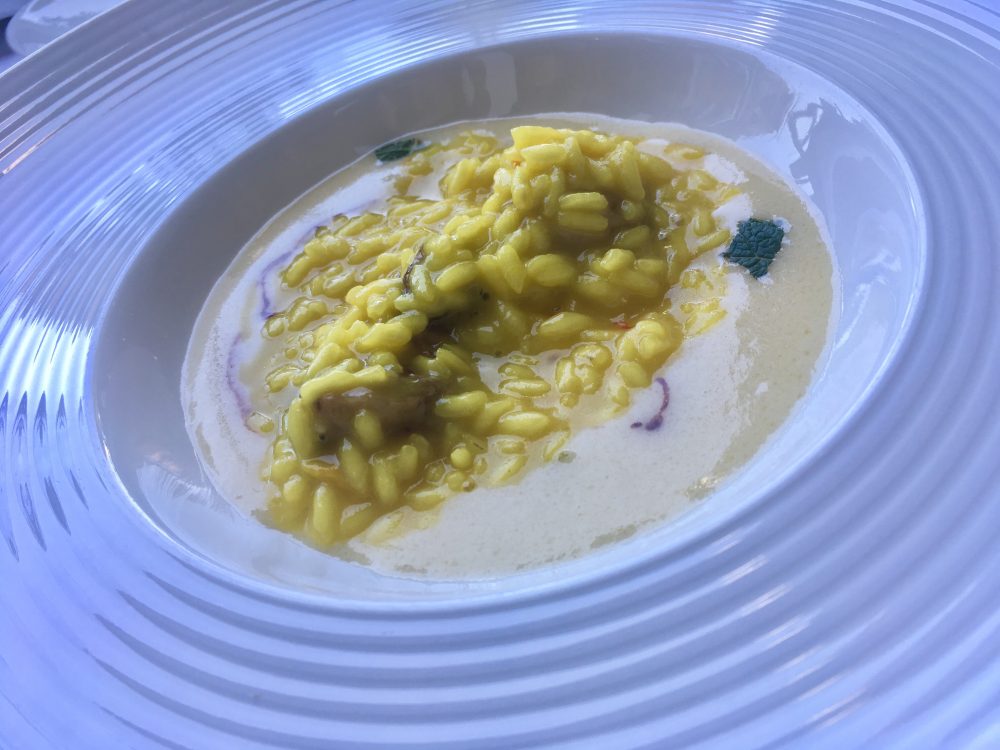 Le coccole avvolgono il cliente nel piatto, ma anche a tavola. L’impeccabile servizio degli addetti alla sala in eleganti cappotti blu per proteggersi dalla costante brezza marina, completa la pietanza grazie all’aggiunta di elementi caldi al piatto. È il caso del Riso Carnaroli con stimmi di zafferano Navelli, “gnumarelli”, fonduta di caciocavallo e menta: una volta servita la base, solo a tavola vengono aggiunti i chicchi dorati.