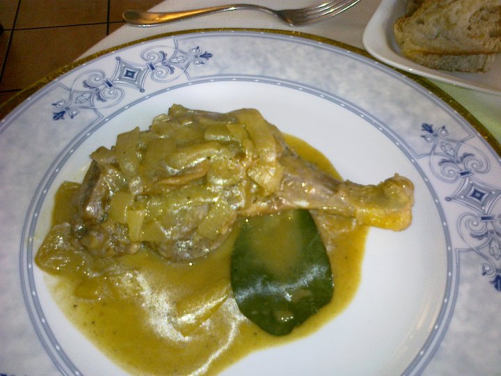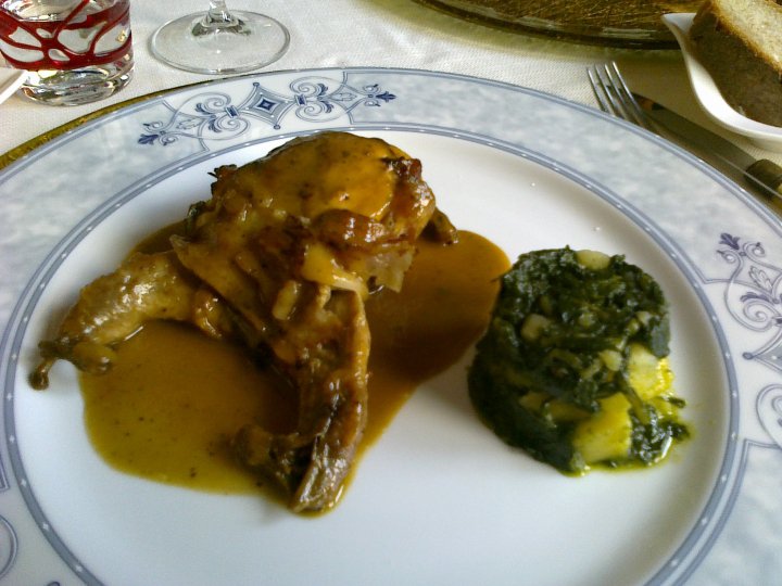 Difficile staccare la polpa dall’osso. Ancora, stinco di maiale al forno, coniglio brasato e profumato con i fiori di lavanda.