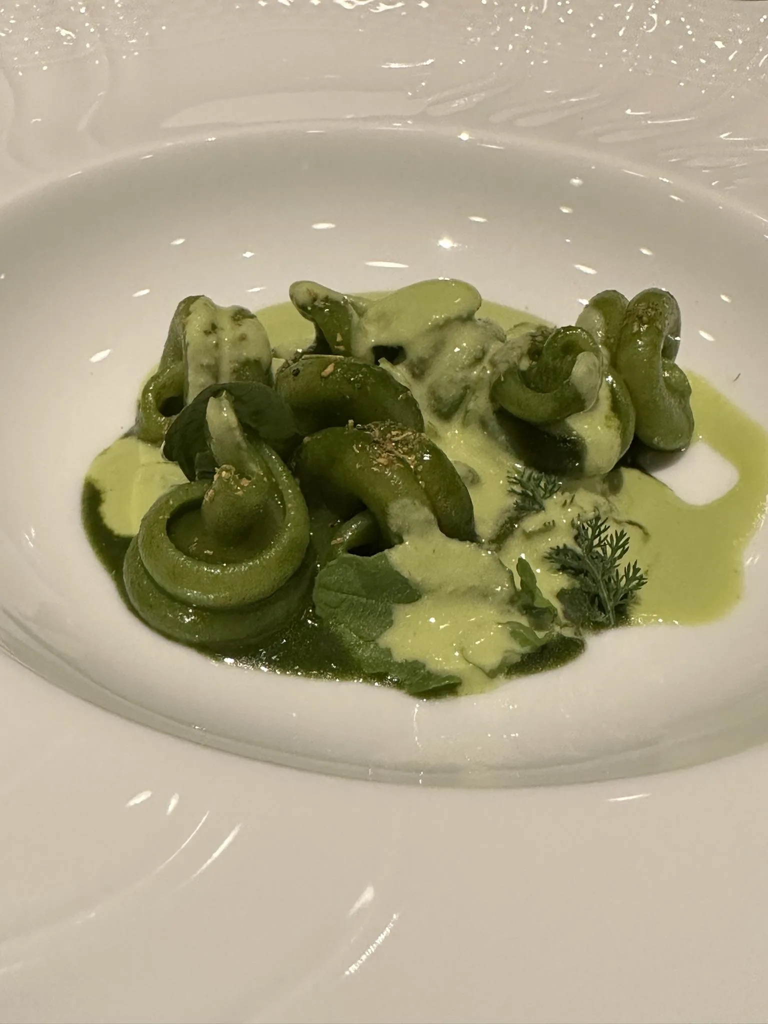 I piatti che mi sono piaciuti di più, l’Ayu in porchetta, un pesciolino di fiume giapponese che si mangia intero, davvero delizioso il contrasto tra la parte esterna dolce e la parte amaricante delle interiora. Le trottole giocate sui gusti dell’amaro, ed il pacchero del Pastificio dei Campi ai sette pomodori, dolce, acido, sapido e tutto che girava intorno alla golosità della pasta.