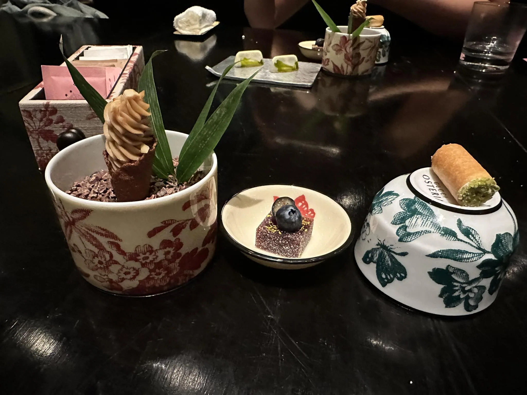Corridoio lungo e stretto, come la forma del palazzo, alla fina la reception e l’ascensore. Mille inchini intanto che l’ascensore si chiude, è la loro cultura. Si aprono le porte dell’ascensore e si entra nel mondo di Gucci, i divani, il pavimento dipinto a mano, le tazze da tè di Ginori, è come essere catapultati nel Rinascimento fiorentino.