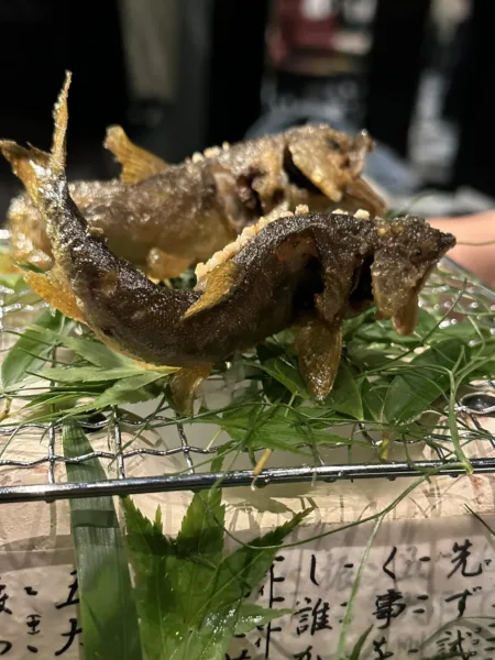 I piatti che mi sono piaciuti di più, l’Ayu in porchetta, un pesciolino di fiume giapponese che si mangia intero, davvero delizioso il contrasto tra la parte esterna dolce e la parte amaricante delle interiora. Le trottole giocate sui gusti dell’amaro, ed il pacchero del Pastificio dei Campi ai sette pomodori, dolce, acido, sapido e tutto che girava intorno alla golosità della pasta.