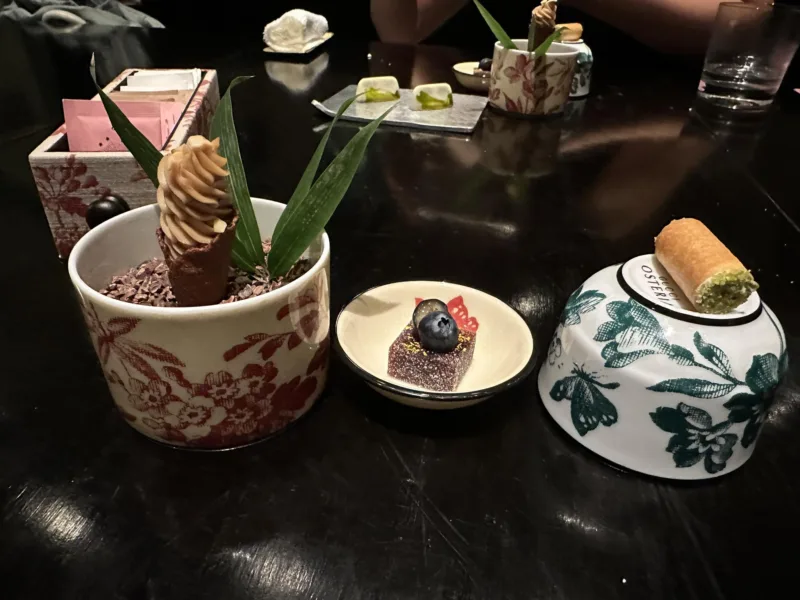In cucina Antonio Iacoviello che in poco più di un annetto dall’apertura è riuscito ad ottenere la prima stella Michelin ed il 3° posto in 50 Top Italy 2023 ed il premio come chef dell’anno. Una partenza a razzo per il cuoco beneventano.