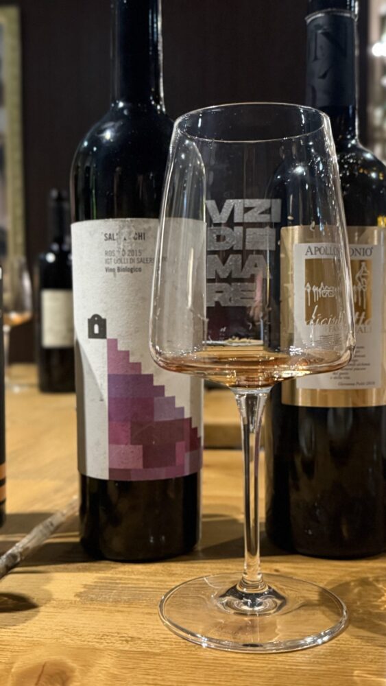 Dal caveau in tufo del ristorante, Luca Lipoma ha scelto di aprire una bottiglia fuori programma, il Salicerchi Rosato Costa d’Amalfi DOP, ottenuto da Piedirosso, Aglianico e Tintore. Un assaggio che ha ampliato ulteriormente il confronto, evidenziando come l’influenza marina e l’altitudine possano preservare freschezza e verticalità anche in contesti di maggiore concentrazione.