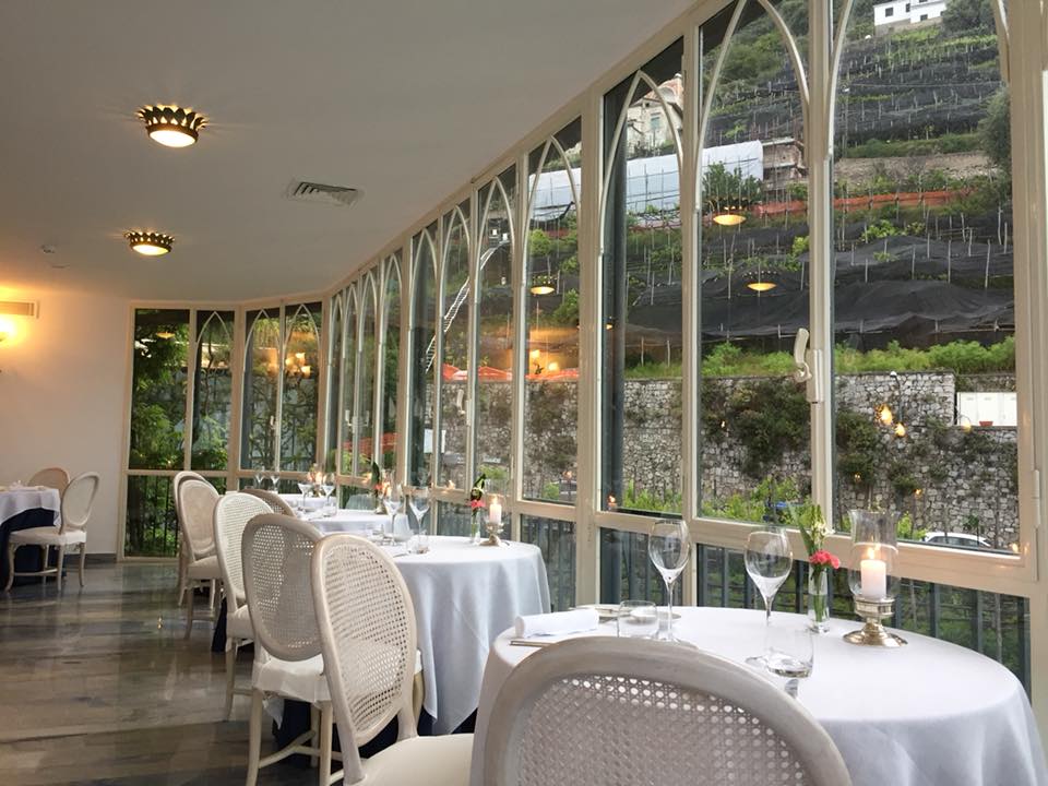 Dal mare si risale verso il centro storico. Verso il cuore pulsante di Amalfi per far tappa su una delle terrazze più intime, ma spettacolari al tempo stesso, che si affacciano sul corso principale. E’ Gemma, quella che per decenni è stata la trattoria amalfitana per eccellenza, oggi locale gourmet saldamente legato però alla tradizione. Salvatore Milano, il giovane chef che ne governa la cucina, è uno di quegli emergenti che, silenziosamente, sanno ben contaminare la proposta con giuste dosi di innovazioni complice anche lo straordinario utilizzo di materia prima spesso utilizzata per portate di sole crudités. Inerpicandosi dalla vicina piazza dei Dogi fin sul al Monte Falconcello, non c’è più solo la veduta a regalare suggestioni ed emozioni.