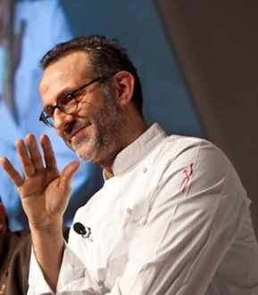 Assai arduo il compito di parlare del cuoco più “parlato” del momento. Di certo la capacità comunicativa di Massimo Bottura è un ingrediente non secondario dell’alchimia che l’ha portato sulle vette del mondo. Ma per capirne l’essenza, basta ascoltarlo mentre racconta uno dei suoi piatti. Bottura è un inarrivabile interprete della Cucina Teatrale, intesa come il momento della rappresentazione del vero attraverso la finzione. Come in Teatro, il cuoco modenese sceglie un linguaggio e ne studia ogni aspetto, sfumatura, accento: poi scrive la partitura e la manda in scena. Curando ogni dettaglio, ma affidandosi anche all’unicità del momento, racconta una storia, quella che lo spettatore gode abbandonandosi ai suoi piatti. Ma in nessun altro mondo s’è visto una tale veemenza, un tale trasporto nel realizzare un progetto, manipolando e reinventando la realtà, piegandola alle proprie intuizioni. Perché la Francescana è il luogo dell’invenzione, assai più preziosa della scoperta. L’invenzione cercata con caparbietà: giorno dopo giorno, superando inerzie e rimestando culture, sapienze, competenze. Un Teatro – una cucina – fatti di contaminazioni, di saccheggio continuo delle verità incontrate sul pianeta Terra. Eppure tutto resta illuminato da un nitore abbagliante, dall’esattezza tagliente delle sensazioni, dalla concentrazione e dall’intensità dei singoli componenti. Per l’armonia, aprire il sipario.