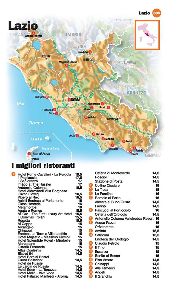 Guida I Ristoranti d’Italia de L’Espresso 2016, Lazio