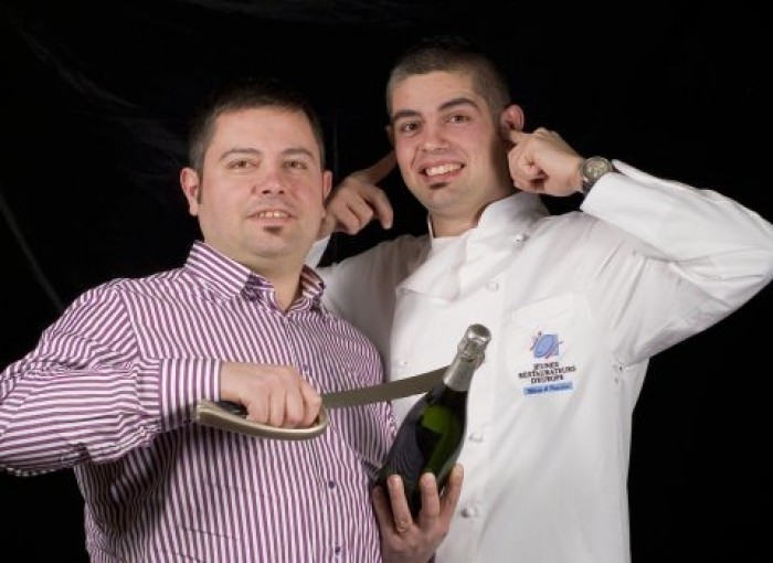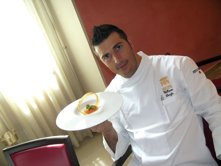 lo Chef Antonio Mellino con la sua creazione e una magnum di Cuvée Louise 1990