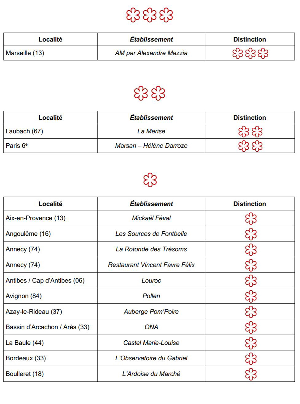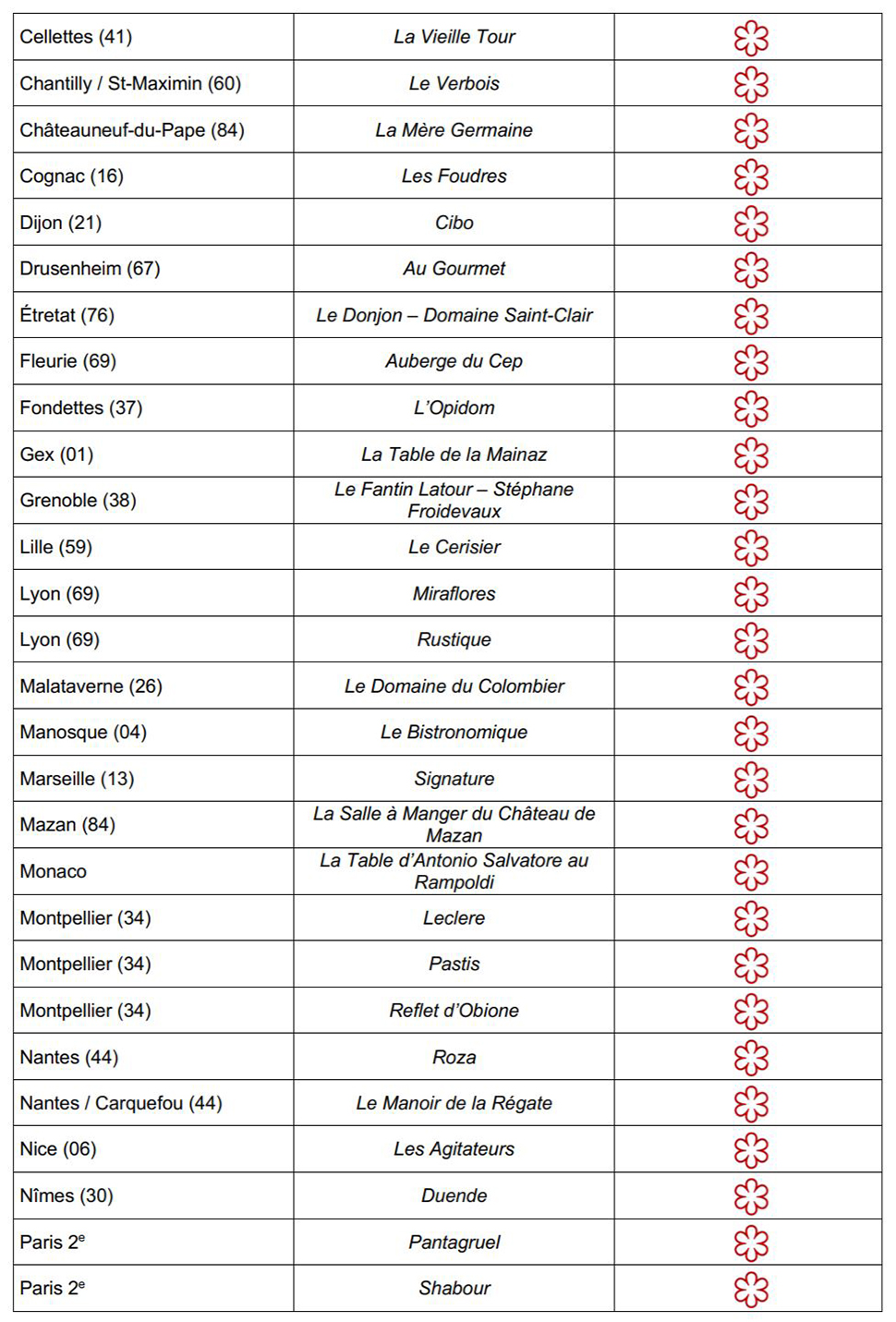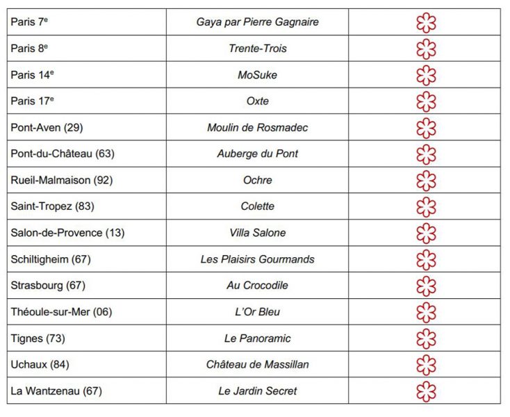 Di seguito l’elenco completo di tutte le stelle dell’edizione 2021 della Guida Michelin Francia.