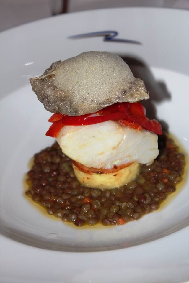 Il baccalà, lenticchie, blinis di patata e papaccelle è sicuramente il piatto più difficile della serata, gusti decisi e sapidità spiccata. Il blinis di patata, lega, smorza, addolcisce insomma risolve il piatto, trovando un equilibrio apparentemente impossibile.