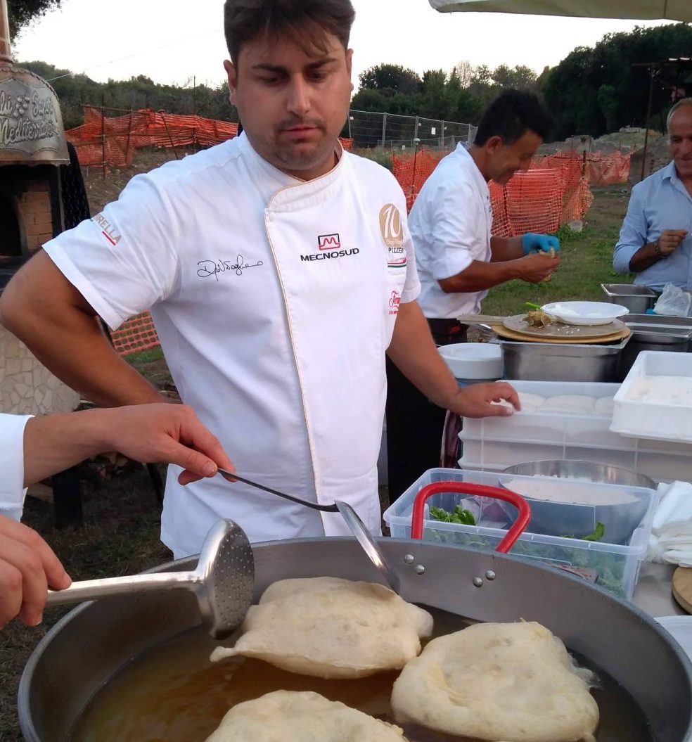 Radici cilentane, scuola napoletana e lavoro in giro per il mondo. Questo blend di esperienze e vissuto personale è la storia di successo e sacrificio di Angelo Mondello, che dal borgo di Alfano, nel Cilento, è partito per fare l’apprendista pizzaiolo da Umberto Sorbillo, nel quartiere Pignasecca di Napoli. Da Sorbillo ha sbucciato patate, tagliato salumi, affettato mozzarella e schiacciato pomodori, per poi – nel tempo – passare al forno e al banco. Ha partecipato a competizioni come concorrente prima e come giudice poi.