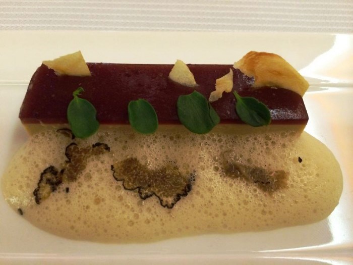 Ed eccoci nel regno di Yannick Alléno, vicino alla grande Avenue des Champs-Élysées. Un Tre Stelle che promette faville e che ha l’ambizione di resettare la grande tradizione francese. In cucina invece c’è lo chef pugliese Martino Ruggiero, polso e tanta professionalità. Una cucina che gli esperti di vino definirebbero verticale. A noi ha divertito moltissimo e pensiamo che in una sala rifatta e una carta adeguata alle proposte gastronomiche qui dentro ci siano ancora ampi margini di crescita.
