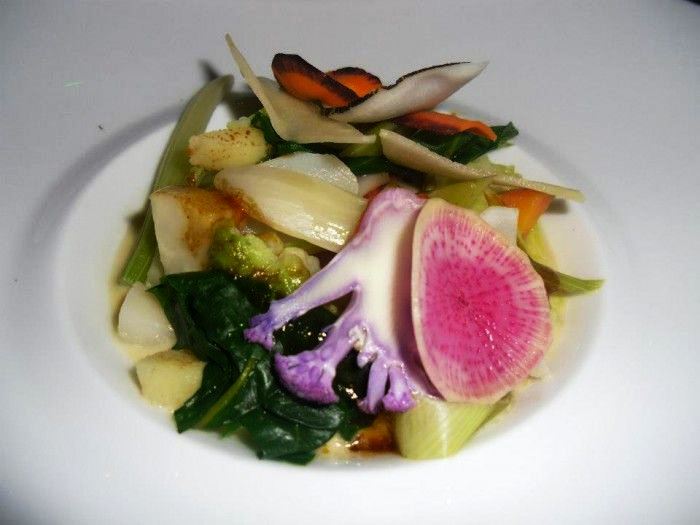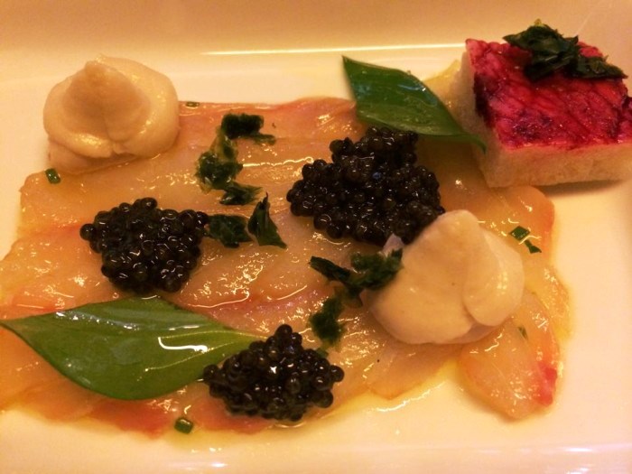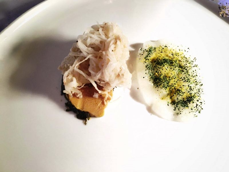 Solo gli spettacolari lampadari ricordano la vecchia sala. Poi la prima cosa che colpisce è la luminosità, un rovesciamento di prospettiva, la capacità di reinventare la proposta restando al passo con i tempi che cambiano. Un ristorante di lusso che ha nel suo programma dichiarato la salubrità degli ingredienti e il rispetto dell’ambiente e che poggia su vegetali, mare e cereali. I primi coltivati biologici, il secondo attraverso il rapporto diretto con cooperative di pescatori, i terzi infine reperiti da piccoli produttori anch’essi biologici. Il messaggio è chiaro: oggi il lusso oltre al gusto guarda alla salubrità dei prodotti e alla compatibilità ambientale.