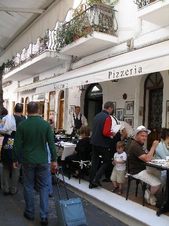 A Villa Verde la pizza modaiola. A pochi metri dalla piazzetta di Capri, il ristorante di Francolino Lembo, uno dei locali trendy dell’isola, dove puoi incontrare Mariah Carey. Sul sito web la photo gallery con centinaia di personaggi celebri. Bella cantina, ottime specialità di pesce. Il pizzaiolo si chiama Giuseppe, tanti anni al Trianon di Napoli; pizza sette giorni su sette, sia a pranzo che a cena. Qui la pizza della casa si chiama, manco a dirlo «caprese», con basilico, mozzarella e pomodori a crudo.
