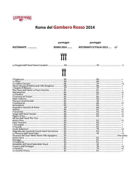 guida-roma-2014-del-gambero-rosso-11 6/6/2013 Torna a: Guida Roma 2014 Gambero Rosso: continua il regno di Heinz Beck. La classifica completa ← PrecedenteSuccessiva →