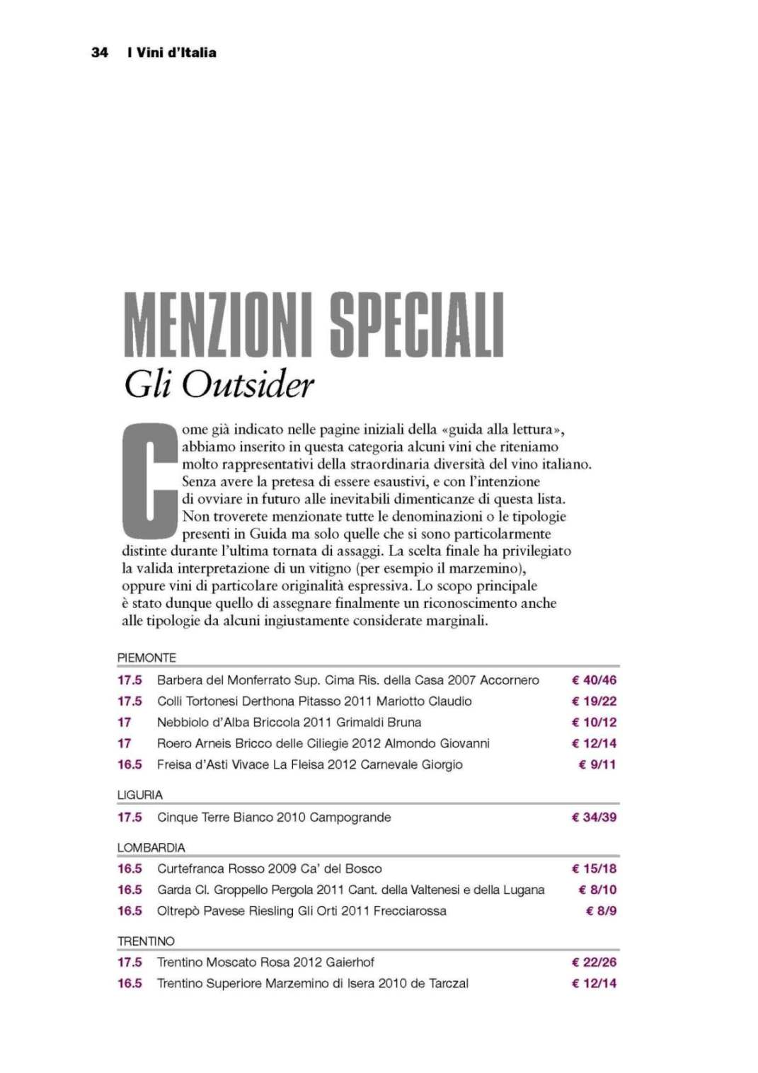 Le aziende di maggiore rilevanza qualitativa sono segnalate dall’attribuzione di stelle (da una a tre) in funzione della loro qualità e continuità nel corso degli anni. Nell’edizione 2014 le “stelle” sono state assegnate a 474 produttori, tra i quali 16 classificati con la massima valutazione di tre stelle. Con la menzione speciale “Outsider” sono stati invece selezionati i migliori vini delle denominazioni o tipologie che si sono particolarmente distinte negli assaggi pur senza raggiungere livelli d’eccellenza.