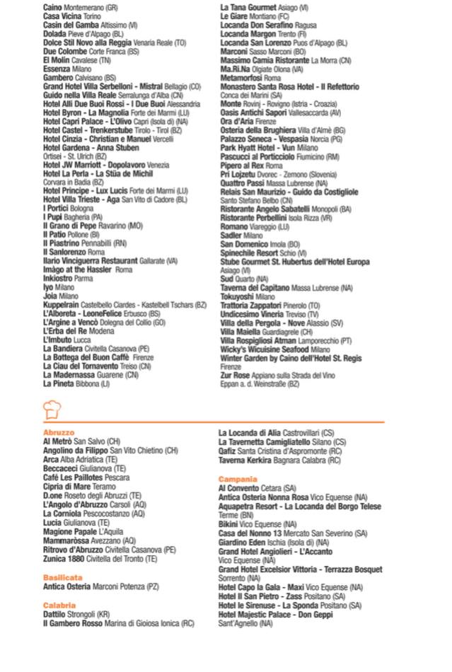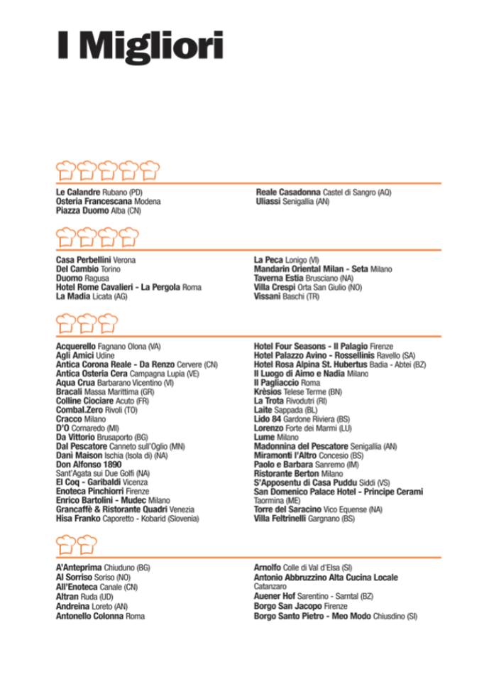 Guida Ristoranti Espresso 2017, i cinque al comando e tutti i Cappelli regione per regione