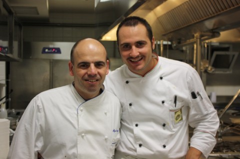 Una sfida a tavola tra piatti di terra e di mare, accompagnati dai vini dell’azienda irpina ‘A casa’. Il tutto per presentare in terra sannita il recente libro di Alfonso Caputo, ‘Il gusto del mare alla Taverna del Capitano’ (edizioni Gribaudo). Per la serata una location di grande suggestione, ‘La locanda del borgo’, ristorante dell’‘Aquapetra Resort SPA’ di Telese Terme. Accoglienza impeccabile, affidata alla direttrice della struttura Myra Petri, da tre mesi in terra sannita dopo venti anni di lavoro trascorsi in quel di Sorrento. In sala la regia dell’attento Ciro Sannino. Nello spazio dei protagonisti, la cucina, oltre alla star della serata, il bistellato Caputo, il giovane padrone di casa, Ciro Simeoli.