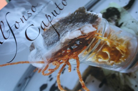 Ingresso estremamente interessante, con le note di affumicato (dovute in gran parte alla triglia, ma anche alla tecnica di cottura del calamaro) che si sposavano alla perfezione sulla dolcezza delle creme. A seguire, il primo piatto, una deliziosa pasta con le patate di Cusano Mutri e provola del beneventano. Un sapore da riprovare, di grande tradizione e con quel tocco di innovazione capace di esaltare il piatto in intensità di sapore.