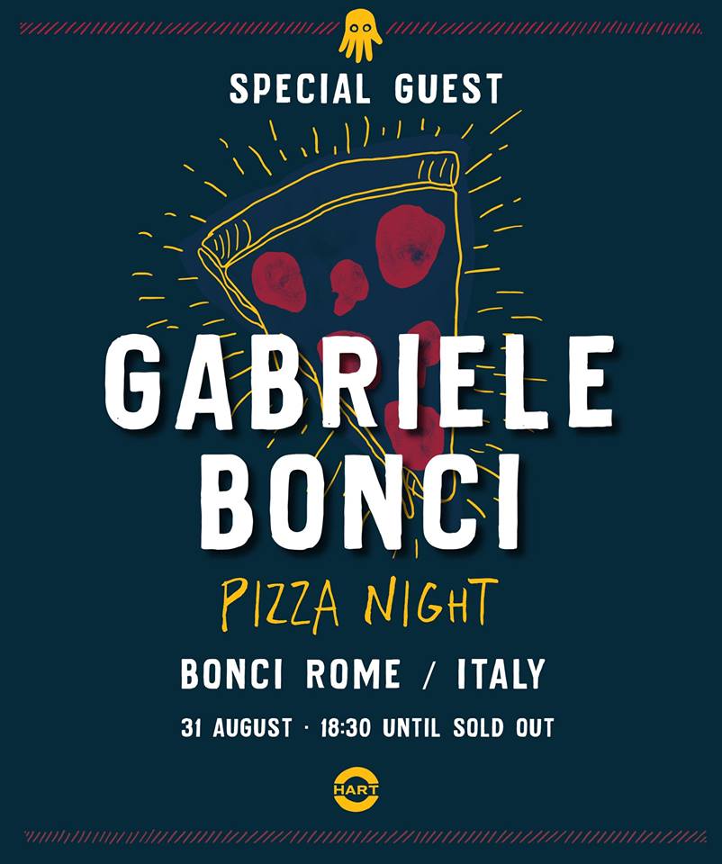 Gustosi anche i toast al formaggio e salumi danesi, praticamente un pasto completo, così come il pane/focaccia con la mortadella, una sorta di ‘pizza e mortazza’ romana, forse a ricordare la grande amicizia e condivisione di vedute, sul «cibo agricolo» che Hart ha con il suo amico e collega Gabriele Bonci, ospite non a caso con la sua pizza proprio qui in una serata sold out.
