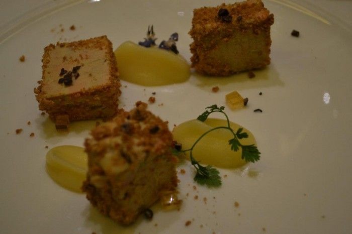 Fegato grasso d’anatra con mele affumicate, mandorle e amaretti