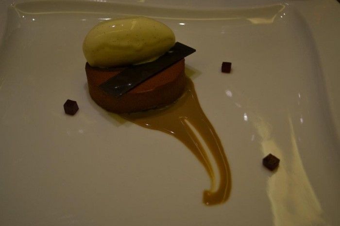 Per finire in bellezza un dessert che ha stupito gli ospiti. Una sensazione piacevolissima al palato. Una mousse che ricorda molto il tiramisù. La nota di caffè è accennata, contrastata dalla lingua di cioccolato, perfettamente temperato. Il gelato di vaniglia dà freschezza al piatto.