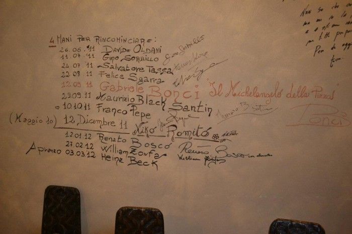 Il ristorante era pieno, tutti in trepidazione per vedere Beck e soprattutto per assaggiare i suoi piatti. Emozionante l’incontro tra il Sindaco de L’Aquila, Massimo Cialente, con lo Chef, a cui ha promesso che tra quattro/cinque anni sarà finita la ricostruzione del centro storico, così da festeggiare la chiusura dei lavori con un altro pranzo, preparato dal Maestro!
