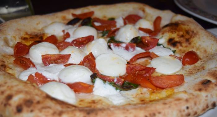 Enrico e Carlo Alberto naturalmente rispondono con le loro pizze, a cominciare da un classico, la Nando, con pomodorini del piennolo, bocconcini di mozzarella di bufala e ricotta di cestino.