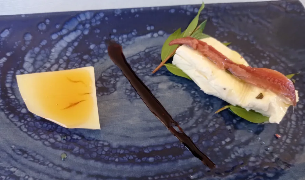 Mozzarella nella mortella, alice di menaica, caciocavallo e cacioricotta di capra con miele di castagno.