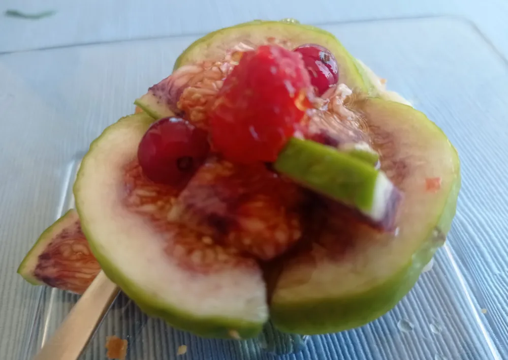 La tartelletta di fichi, con fiori, ribes e miele di castagno ha posto fine ad un pranzo davvero favoloso, il quale è stato accompagnato dagli ottimi vini dell’azienda cilentana Albamarina di Mario Notaroberto.