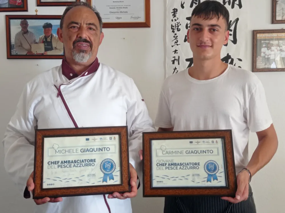 questo locale con una capienza massima di dieci posti a sedere. Il “professore” è docente presso la scuola alberghiera Ancel Keys di Castelnuovo Cilento, laddove il giovane Carmine si è diplomato. Entrambi poi sono stati insigniti del titolo di “Chef Ambasciatori del Pesce Azzurro”.