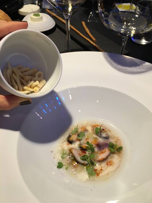 Il Comandante, risotto con cozze, crema di broccolo, limone e curcuma