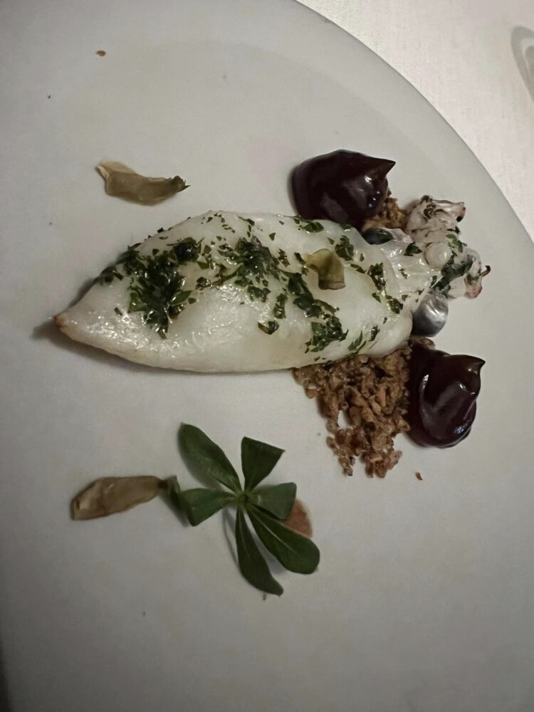 La cucina ormai è un classico e la sperimentazione riguarda soprattutto il vegetale su cui il grande cuoco tedesco ha iniziato a ragionare in tempi non sospetti. La melanzana arrostita è forse la cosa più buona che abbiamo mangiato quest’anno. Il sapore dell’ortaggio è sapientemente estratto ed esaltato, ma la consistenza al palato è agile, una nuvola quasi. Un vero e proprio gioco di consistenza che conferma l’assoluta padronanza della materia da parte di Heinz Beck.