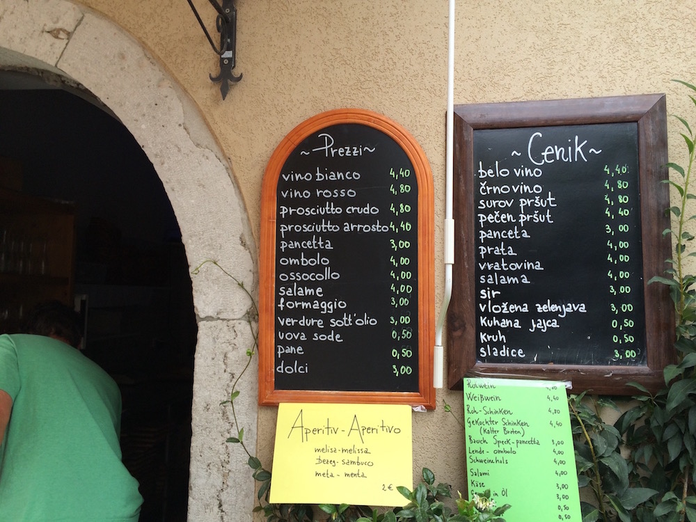 Comunque, dopo la visita a Škerk, dove avevamo bevuto abbondantemente, la fame ha preso il sopravvento e si decide per un Osmiza presso l’Azienda Agricola Ivan Gabrovec, e tutti d’accordo che avremmo bevuto solo acqua. Voi ci credete…!?!?!
