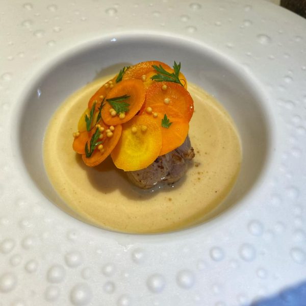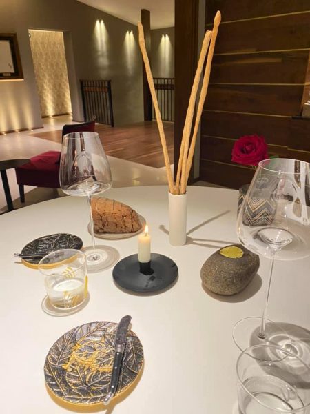 Colori vivi, ingredienti autentici, integrità dei sapori. Piatti composti da pochi elementi ben assortiti, leggeri. Un richiamo ai profumi della tradizione nel servizio del pane all’apertura in cui trova posto una candela. All’apparenza una semplice candela bianca che nasconde un goloso segreto. L’odore che sprigionerà sarà irresistibile e, sciogliendosi il grasso, la si potrà consumare con il pane. La fantasia che rincorre il ricordo delle tradizionali grigliate nel camino dopo aver ammazzato il maiale. Geniale.
