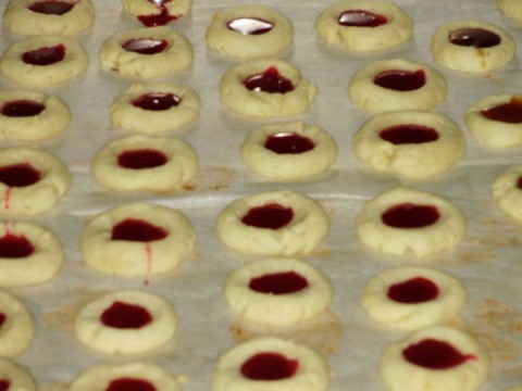 Preparare la pasta frolla, farla riposare per circa 30 minuti in frigo. Formare delle palline dal diametro di 2 centimetri circa e schiacciarla al centro con il dito pollice formando un’incavo e disporle in una teglia d’acciaio su carta-forno. Infornare a 150°C per 5 minuti, quindi sfornare, adagiare un amarena oppure il caramello per ogni biscotto e reinfornare per altri 5 minuti.