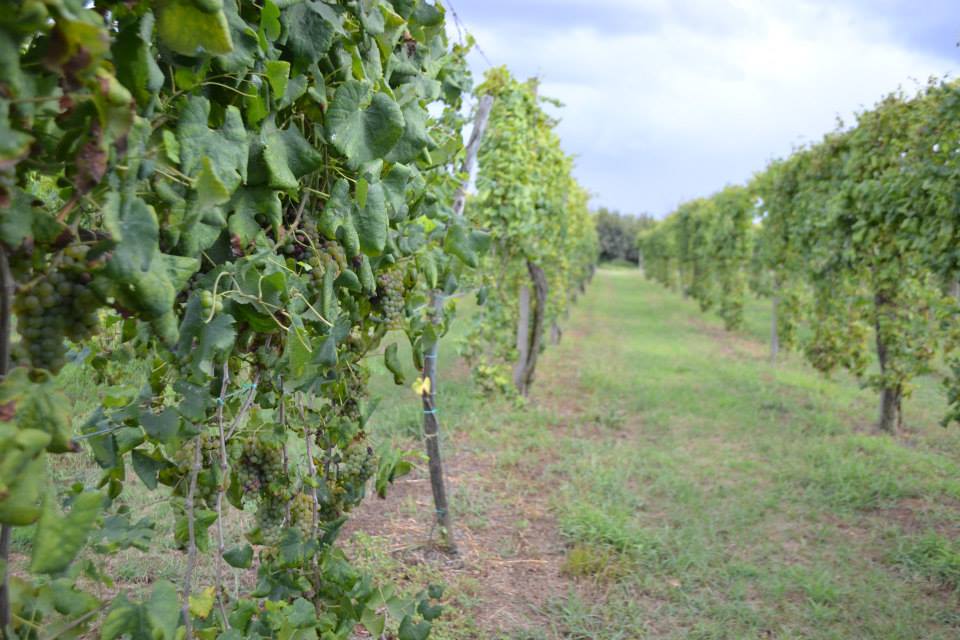 L’alberata aversana è l’antico metodo di allevamento dell’asprinio, che disegna un paesaggio incantevole in questi luoghi da più di 2000 anni. La vite si “marita” agli alberi fino a raggiungere l’altezza di circa 15 – 16 metri, secondo un’antica usanza etrusca. E’ quindi particolarmente suggestiva la vendemmia degli uomini ragno in bilico sulle alte scale sottili, ognuna costruita per il singolo vignaiolo calcolando la distanza tra un piolo e l’altro corrispondente esattamente alla lunghezza della sua gamba, perché possa bene incastrarla e mantenere quindi un buon equilibrio. Le mani devono essere libere, quindi niente cesoie, ma solo la corda della féscina, la cesta a cono, di castagno, con la quale si riversa l’uva raccolta sul terreno, senza mai scendere dalla scala. Ovviamente la presenza dell’alberata è minoritaria rispetto ai filari allevati a silvouz, in quanto l’azienda già dagli anni settanta ha puntato ad una produzione di qualità, l’unica strada che possa far tornare i conti a fine anno.