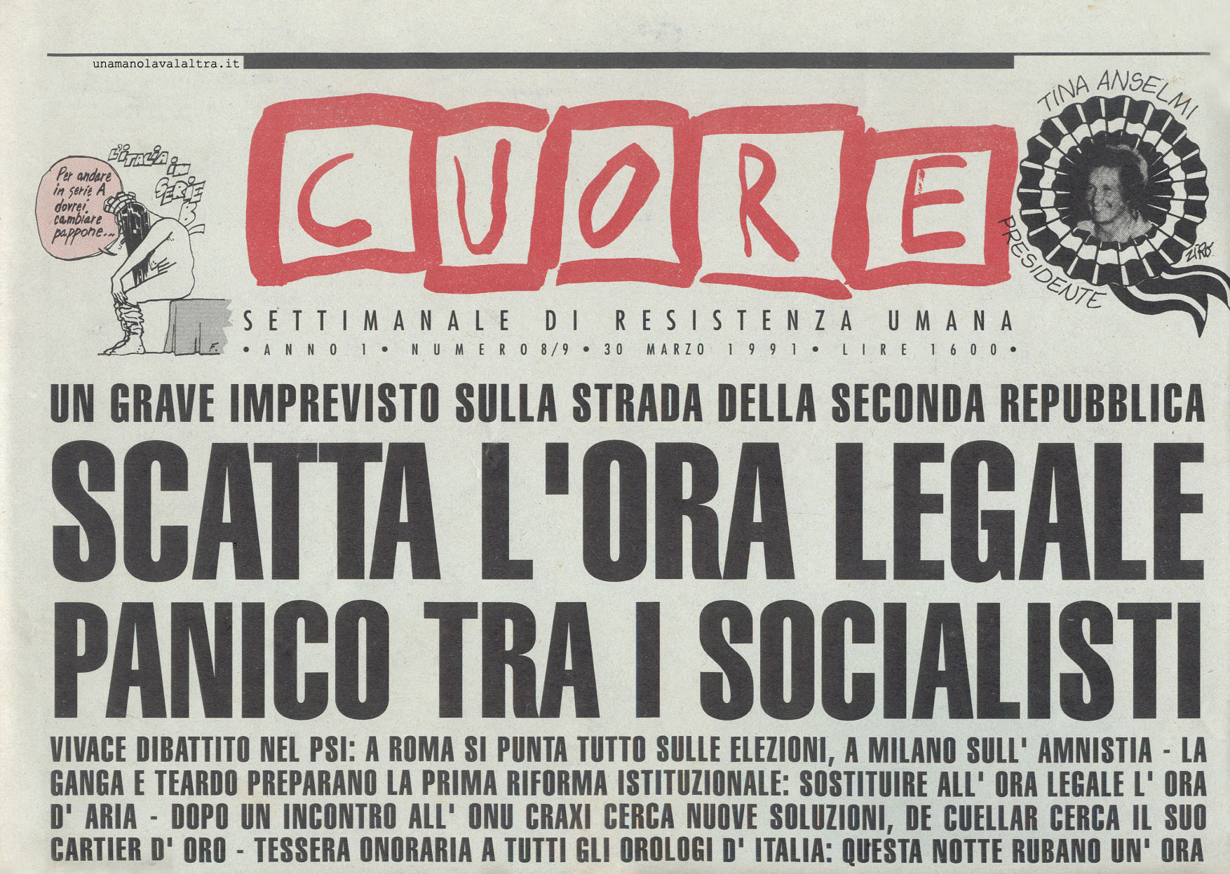 Quando scatta l'ora legale, o solare, o tutt'e due, è bene non mostrare segni di debolezza, chessò sbadigliare, aver fame o sonno: c'è sempre qualcuno che ti ricorda che è logico, che l'organismo deve adattarsi al nuovo orario, specie al lunedì, soprattutto al mattino, meglio se in ufficio o in ascensore: ora più, ora meno, sempre disagio comporta. Quasi che il disagio dipendesse dall'orologio o dal calendario. Allo stesso modo, per quanto cerchi di evitarlo, c'è sempre un altro qualcuno che scopre, fatalmente, poeticamente, ineluttabilmente che s'è fatto buio presto: dio come si sono accorciate le giornate, o allungate le giornate: guarda è ancora giorno.