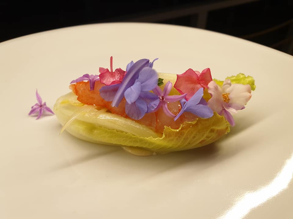 La “caesar di mare”, lattughino ripieno di gambero crudo, emulsione a base di yogurt e fiori eduli, è probabilmente il piatto del viaggio. Fresco, pulito, persiste, davvero delizioso.