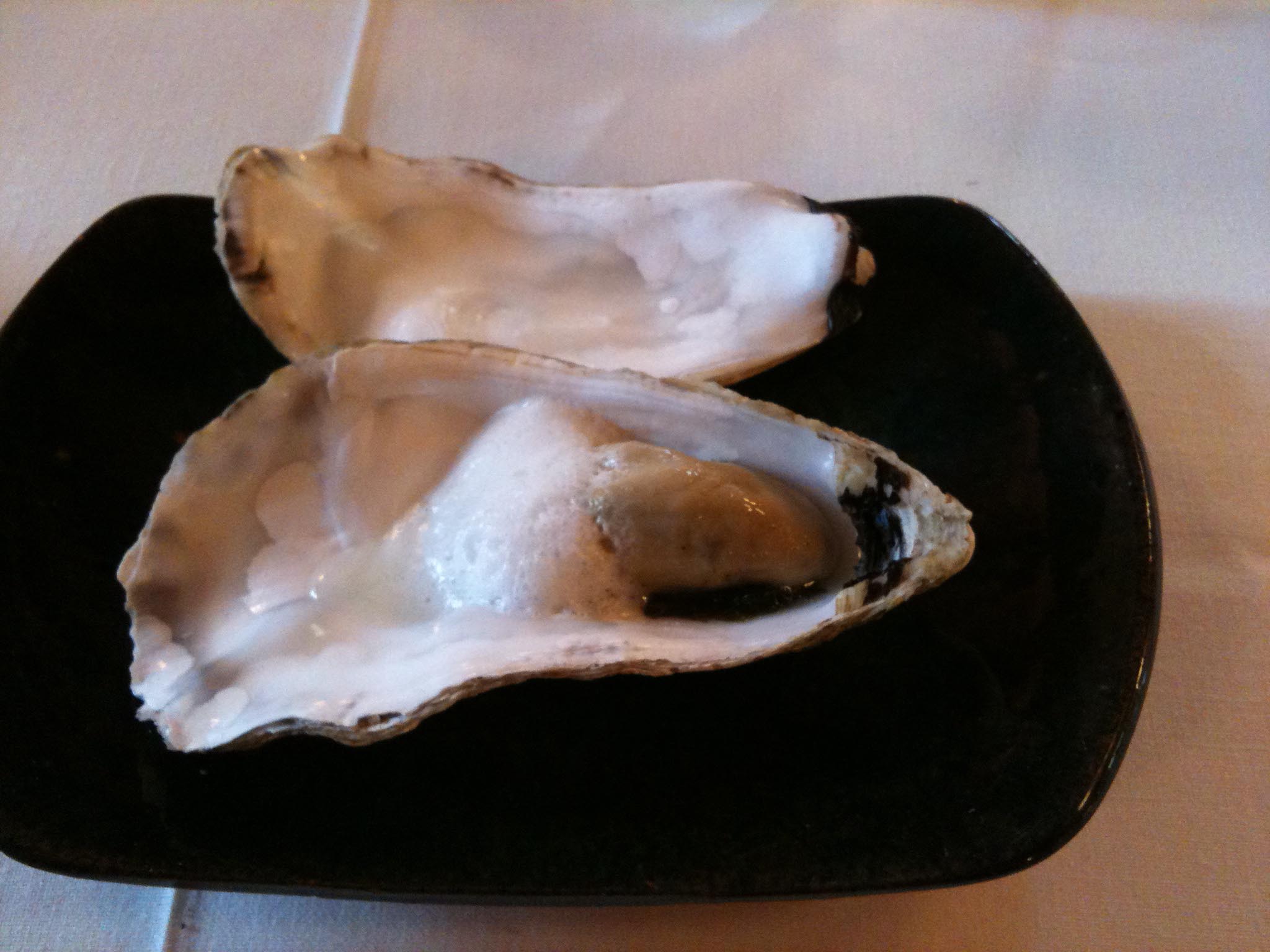 L’ostrica, presentata nella conchiglia su un letto di alghe bollite e con una schiumetta di civettuola concessione alla modernità, conserva il gusto iodato e guadagna un lieve sentore di fumo: è impeccabile, ma non per tutti i palati.
