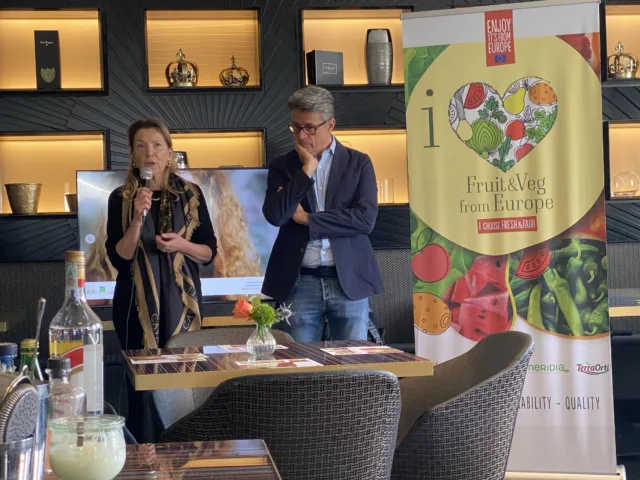 Punto fermo della conferenza è stato mettere al centro la salute e il benessere dei consumatori, che in maniera sempre maggiore apprezzano e sostengono, tramite gli acquisti, la frutta e la verdura di stagione Made in Europe e in particolare Made in Italy. Ad accompagnare l’incontro due speciali master class dedicate ai cocktail e ai vini. La prima curata dal bar tender Mirko Lamagna, ideatore della “mixology gourmet”, la miscelazione dei drink con tecniche di alta cucina e di alta pasticceria, che ha servito il cocktail “Love grape” a base di uva e il “Love prickly pera” con fichi d’India, ideati per il programma “I Love Fruit & Veg From Europe”. La seconda è stata curata dal sommelier Steffen Wagner, che ha illustrato come abbinare sapientemente vini e piatti a base di frutta e verdura.