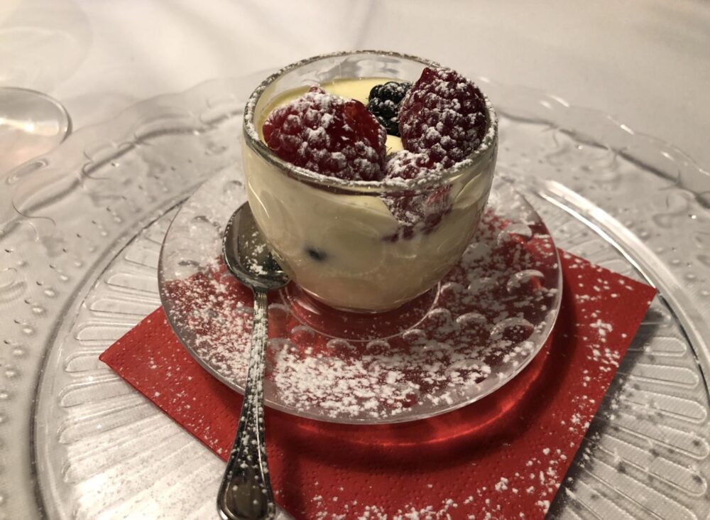 Mini porzione di mascarpone con frutti di bosco, euro quattro, felice la scelta di proporre in carta il dessert in versione mini, anche nel prezzo, opportunità da non perdere per golosi&virtuosi, si chiude con un caffè nella moka al prezzo commovente di un euro e cinquanta